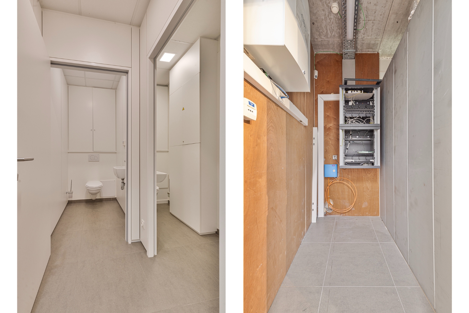 De ruimtes zijn meteen instapklaar en zijn ingedeeld als volgt: inkomhal (voormalig cashpunt) - onthaalruimte of polyvalente, open kantoor- of dienstenhal geschikt voor 2 burelen - 3 afzonderlijke burelen (deels met inmaakkasten) of praktijkruimtes - berging/technische ruimte - voormalige kluisruimte - ingerichte keuken met eetplaats, uitgerust met inductiekookplaat, dampkap, koelkast, microgolfoven, vaatwasser en spoelbak - sanitair blok bestaande uit 2 toiletten met lavabo.