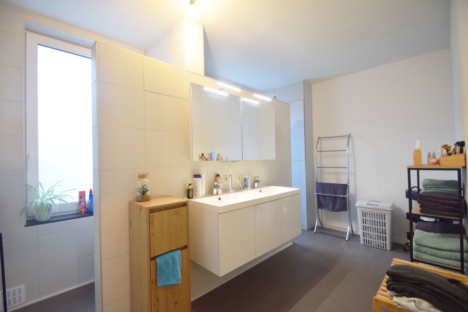 Deze charmante woning biedt alles wat je nodig hebt voor een comfortabel en praktisch stadsleven. Bij binnenkomst vind je de ruime inkomhal, die toegang geeft tot een praktische berging en een apart toilet. De gezellige open keuken en de lichte woonkamer creëren een aangename sfeer om te ontspannen of te genieten van een lekkere maaltijd.