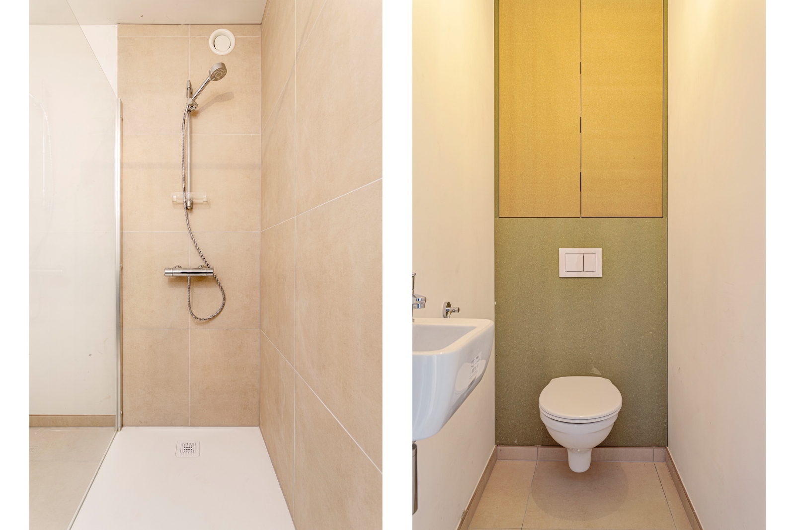 Het alhier belichte appartement beschikt over 47m² terras. Zicht op het Handzameplein en 2 slaapkamers.