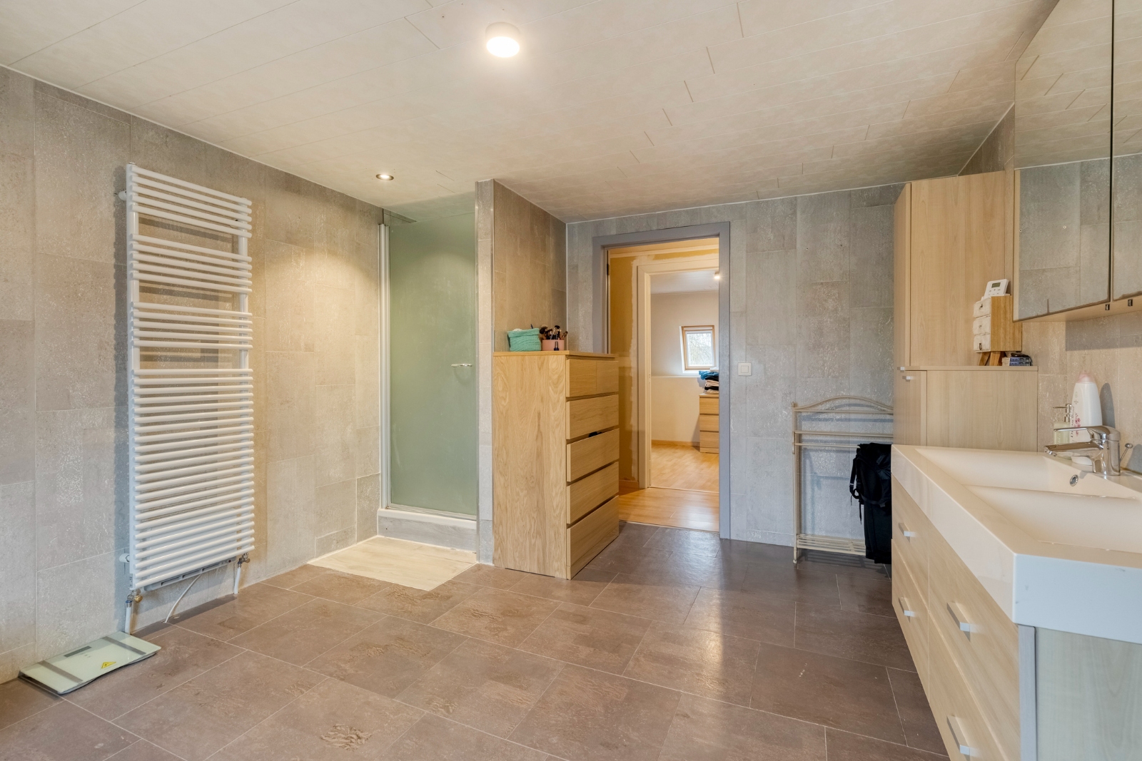 - Eerste verdieping: trap- en nachthal - slaapkamer 2 - slaapkamer 3 - slaapkamer 4 - slaapkamer 5 - bergplaats - grote badkamer met douche, toilet en dubbel lavabomeubel - toegang tot zolder via luik in de nachthal.