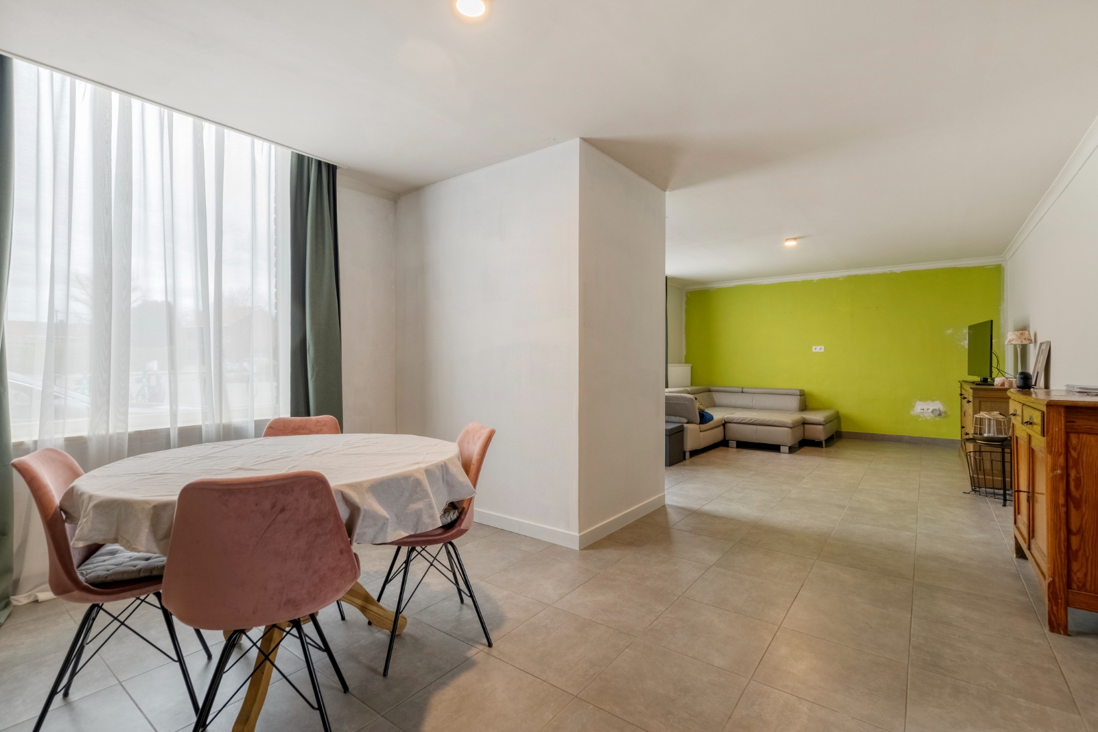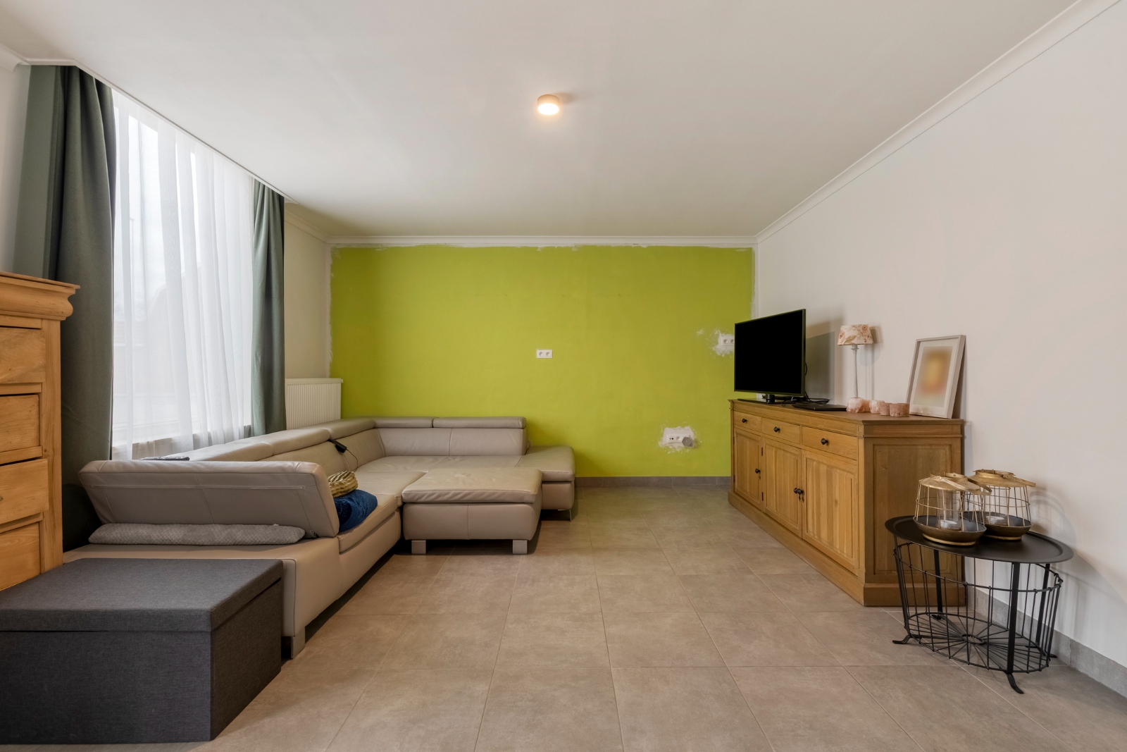 - Gelijkvloers: inkom - ruime, lichtrijke woonkamer met zithoek en eetplaats - aanpalende, open keukenruimte - wasplaats en toilet - traphal met toegang tot eerste verdieping, kelder en achterdeur - voutekamer (slaapkamer 1) - grote, inpandige garage met sectionale poort.